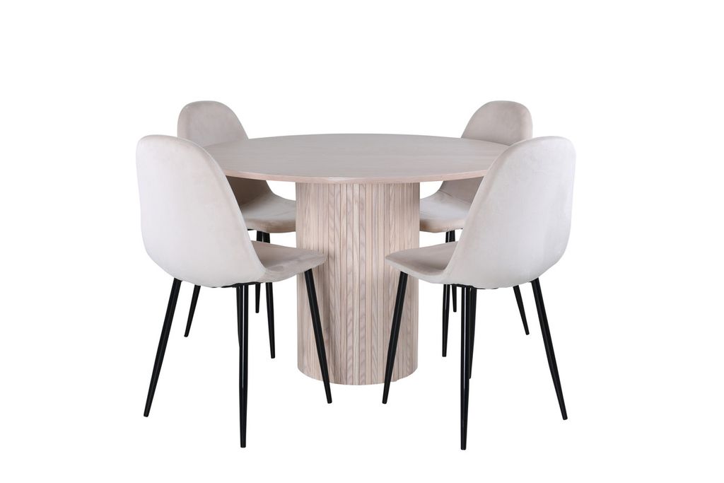 Venture Home Bianca & Polar Runt Matbord ⌀110 Vitputsad + 4 st Matstolar Beige