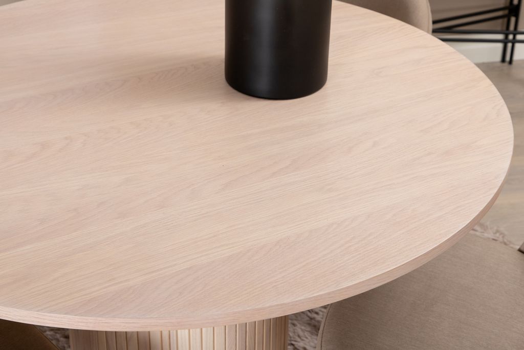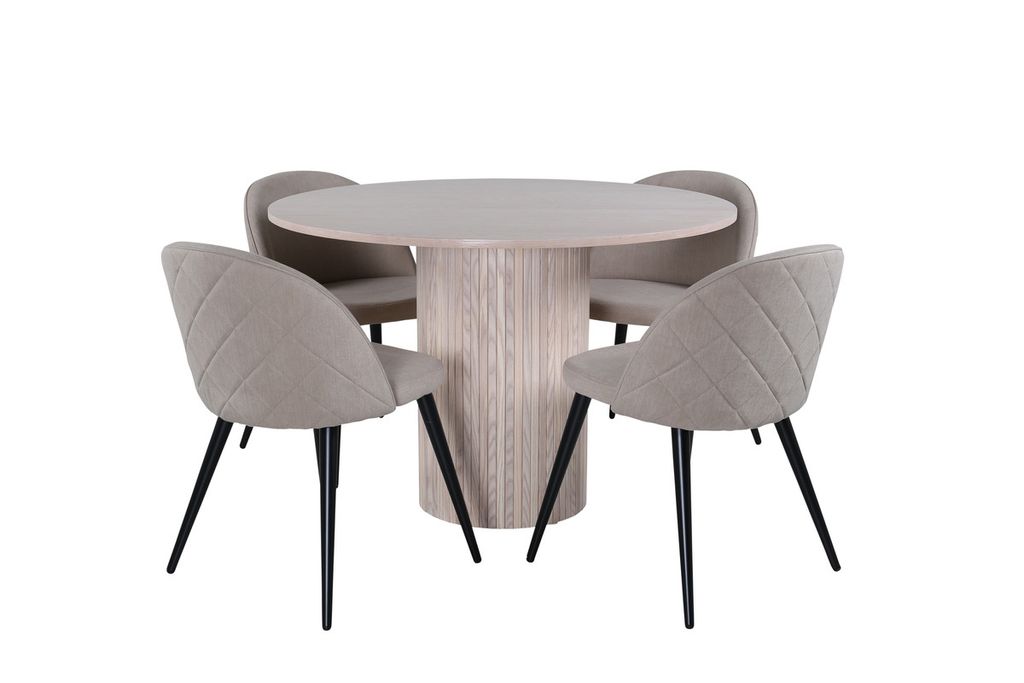 Venture Home Bianca & Velvet Runt Matbord ⌀110 Vitputsad + 4 st Matstolar Beige