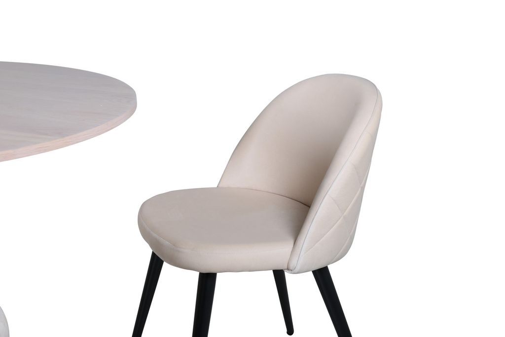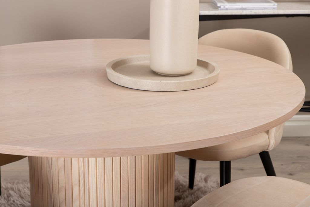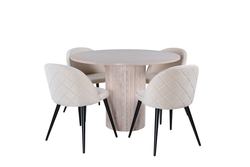 Venture Home Bianca & Velvet Runt Matbord ⌀110 Vitputsad + 4 st Matstolar Beige