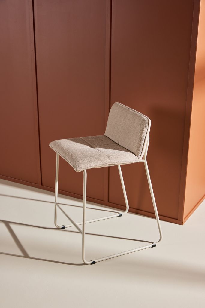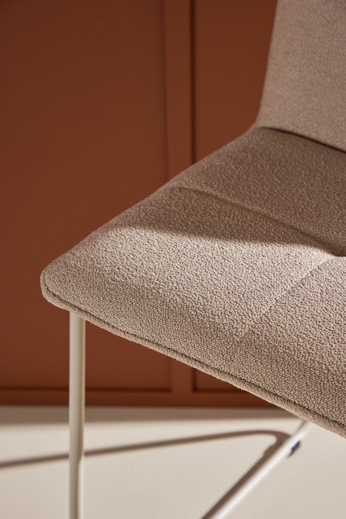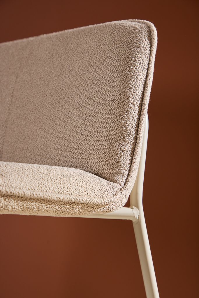 Sitsen är utformad för att ge optimalt stöd, vilket gör Bisbee idealiska för både långa middagar och avslappnade stunder vid köksön. Den taktila boucléns struktur bidrar med en visuell och känselmässig dimension som gör varje sittupplevelse unik.