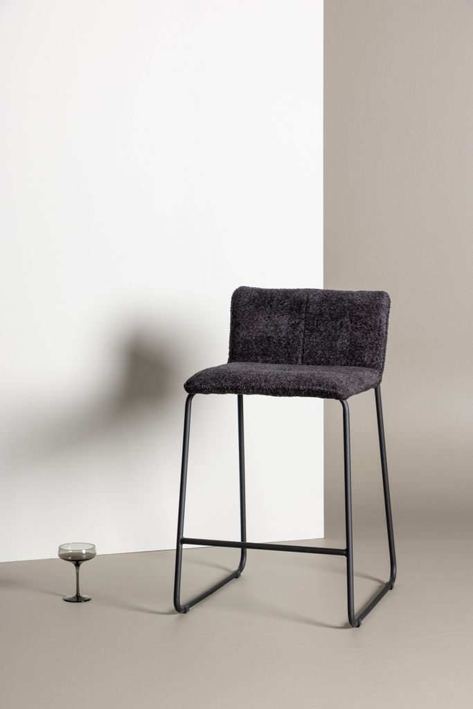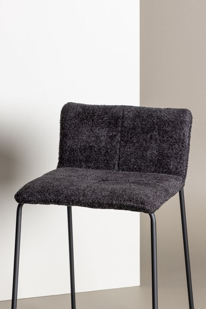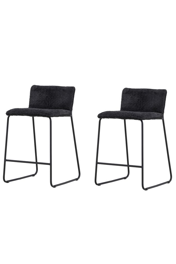 Modern och stilren barstol i svart bouclé-material för kök eller bar. Säljs i 2-pack.