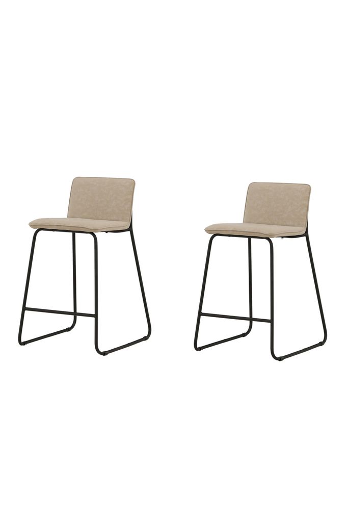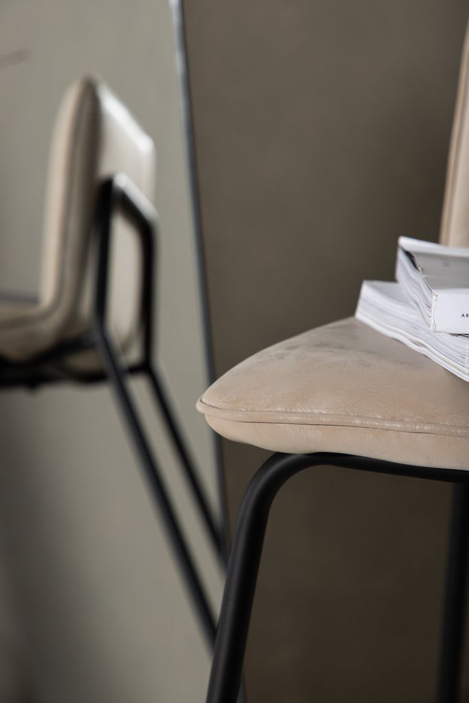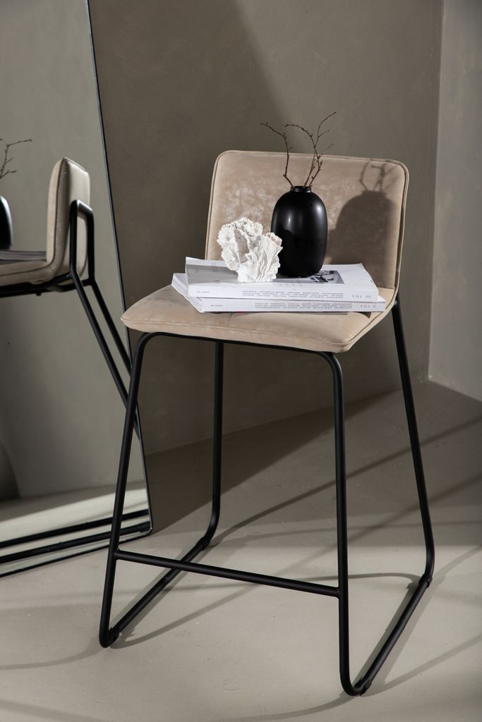 Trendig och bekväm barstol i skandinavisk design med beige mikrofibersits och svart stålram.