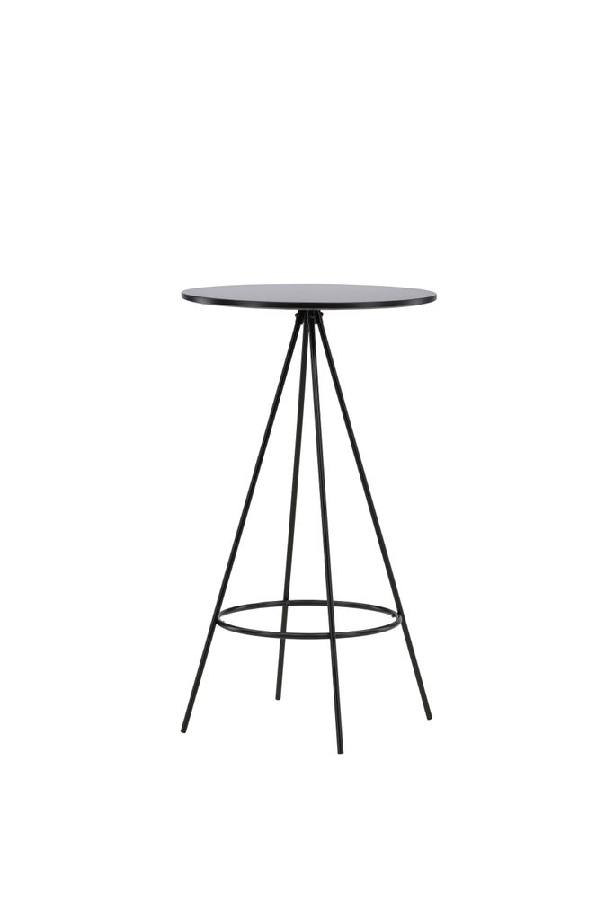Venture Home Bistro Barbord kombinerar minimalistisk skandinavisk design med praktisk funktionalitet. Den eleganta runda bordsskivan, tillverkad av svart MDF med faner, ger en sofistikerad yta som är både hållbar och stilren. Bordet har lätt utsvängda, konformade ben av svart metall som skapar ett luftigt intryck och bidrar till bordets stabilitet.