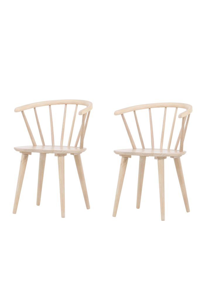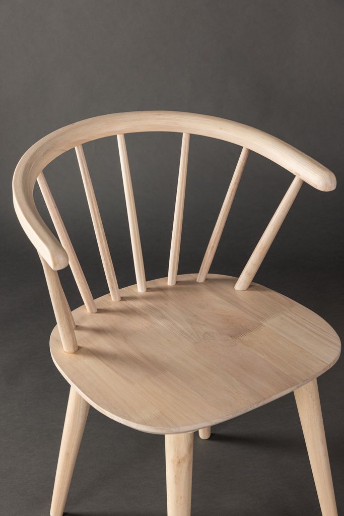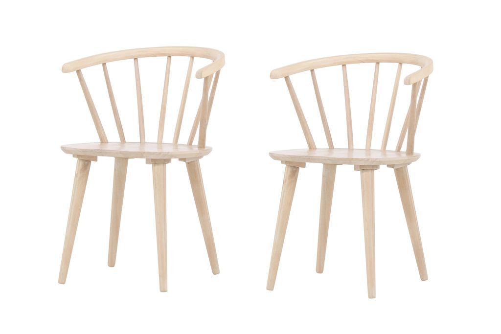 Bobby-stolar i vitpigmenterat gummiträ kombinerar elegans och komfort för en modern touch i ditt hem.