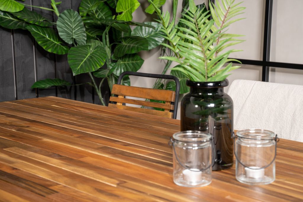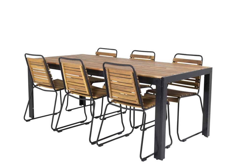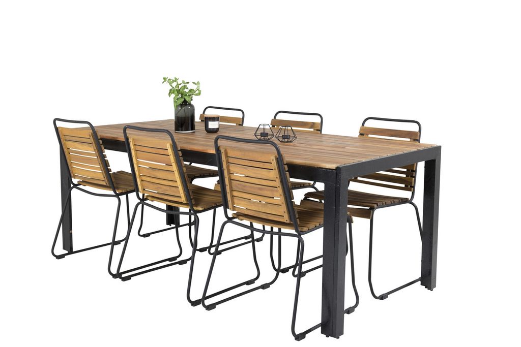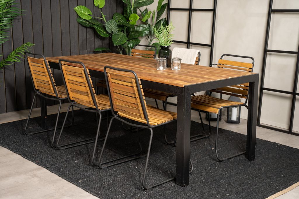 Nätta matstolar Bois i en härlig träfärgad look tillsammans med matbordet Bois. Kombinationen av svart och trä ger ett ombonat och lyxigt uttryck på vilken uteplats som helst!