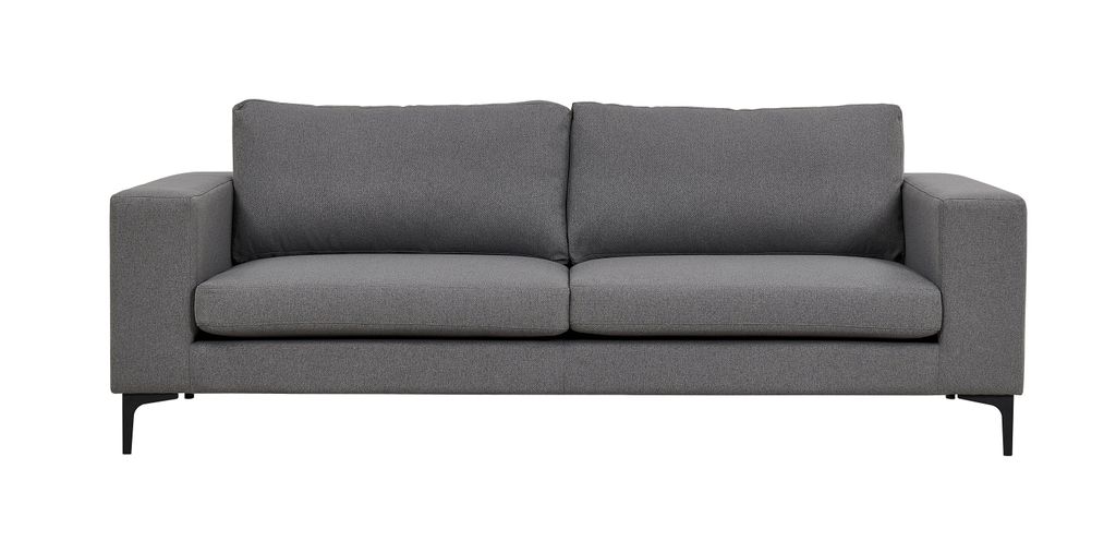 Stilren grå 3-sits soffa med hög komfort och praktiska armstöd. Perfekt för moderna hem.