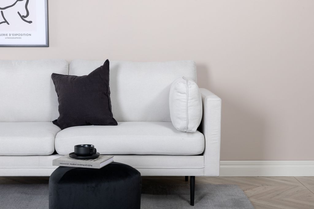 Stilren och modern 3-sitssoffa i vit klädsel med nordiska former och svarta metallben som ger ditt hem en lyxig känsla.