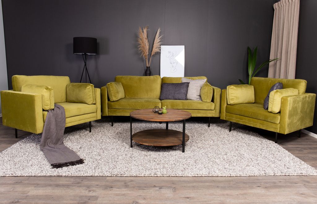 Inred ditt hem med en behaglig färgklick! En elegant 2-3-sits soffa i serien Boom erbjuder både stilren design, hög sittkomfort och återfinns i flera olika färger! Den här bekväma soffan är en stilikon med sin raka nordiska form och modernt höga armstöd. Den härligt gröna sammetsklädseln och cylinderformade metallbenen i svart skapar ett konstnärligt uttryck som garanterat kommer försköna ditt hem.