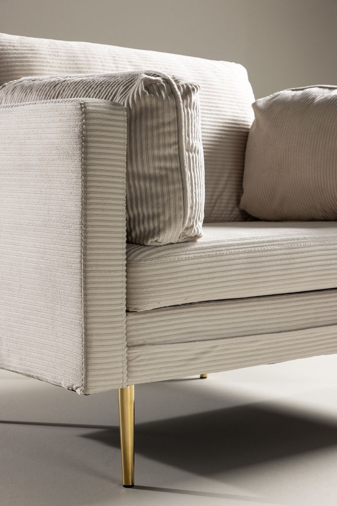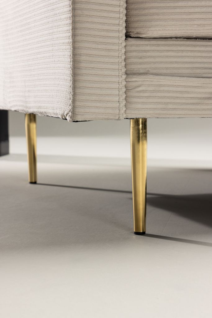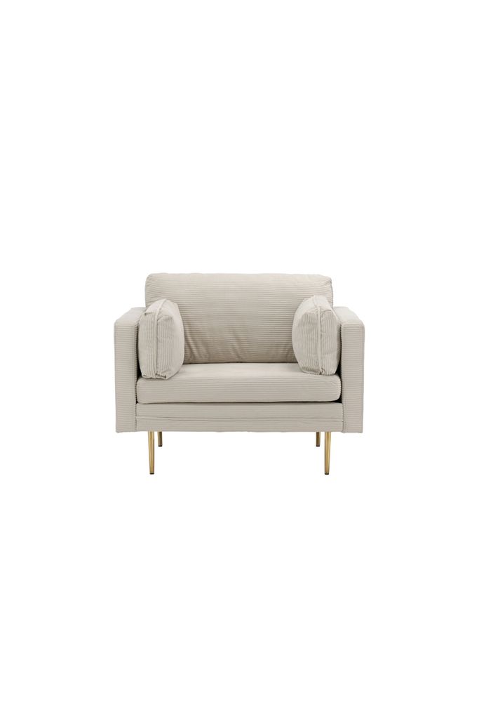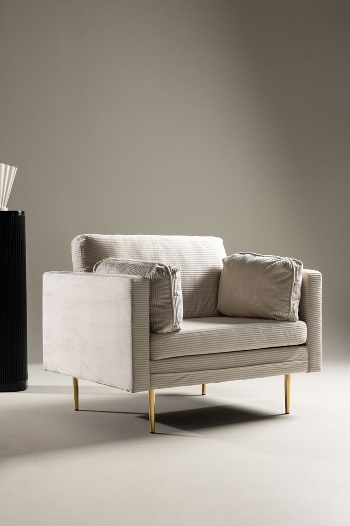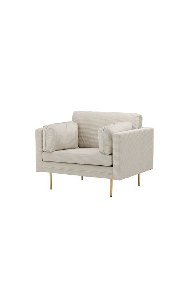 Välkommen till en värld där modern design möter 50-tals nostalgi med vår eleganta Venture Home Boom fåtölj. Denna stiliga fåtölj är klädd i lent ljust beige sammetstyg vilket ger en elegant lyster till ditt vardagsrum. Den raka men samtidigt mjuka designen tillsammans med smala, höga guldfärgade ben ger fåtöljen ett luftigt och inbjudande utseende.