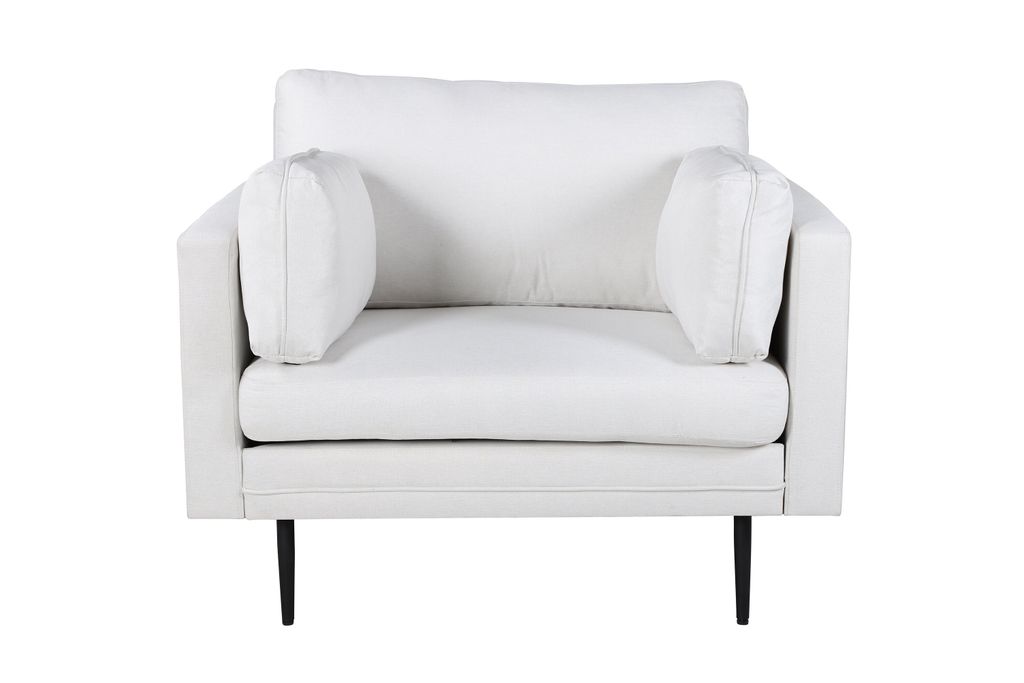Venture Home Boom Fåtölj är en stilren och modern möbel som erbjuder både komfort och elegans. Den vita klädseln ger en känsla av renhet och tidlöshet, medan de smala svarta metallbenen tillför en modern touch och ger en praktisk höjd. Denna fåtölj är designad för att förlänga din värdefulla egentid och skapa ett lyxigt blickfång i ditt hem.