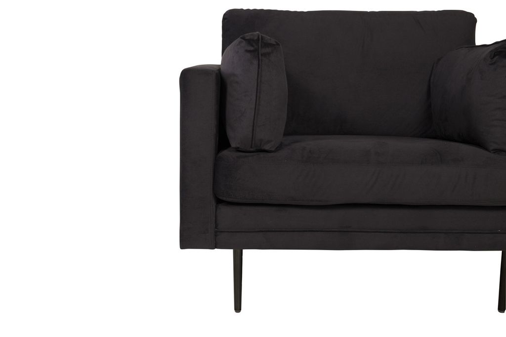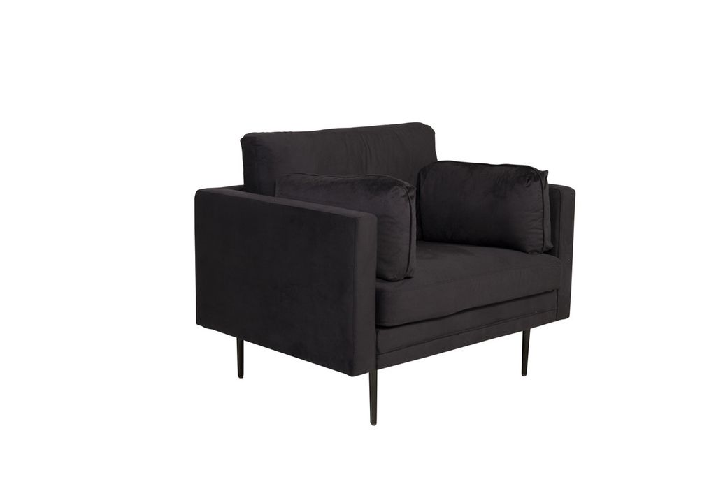 Lyxig, elegant och pampig - en modern fåtölj som imponerar! Boom är en trendig fåtöljdröm med hög komfort och stilren design. Klädseln i svart sammetstyg ger ett härligt lyster till vardagsrummet. Den raka nordiska designen kombineras med mjuka former, stilrent smala ben och generöst sittdjup som tillsammans skapar en luftig och inbjudande känsla. En otroligt genomtänkt helhetsdesign helt enkelt med klädd baksida som möjliggör att placera fåtöljen mitt i rummet. Möblera ensam som stilikon eller i grupp tillsammans med vår 3-sitssoffa som också finns i serien Boom.