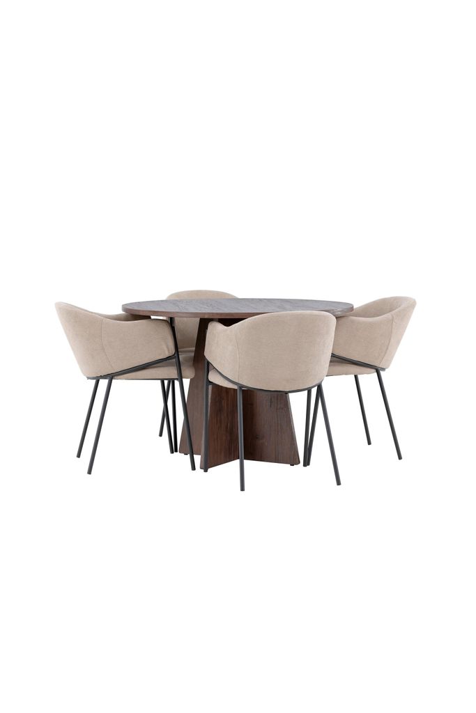 Skapa en inbjudande och stilren matplats med vår eleganta matgrupp. Kombinationen av det runda Bootcut bordet och Evelina stolar erbjuder både skönhet och komfort.