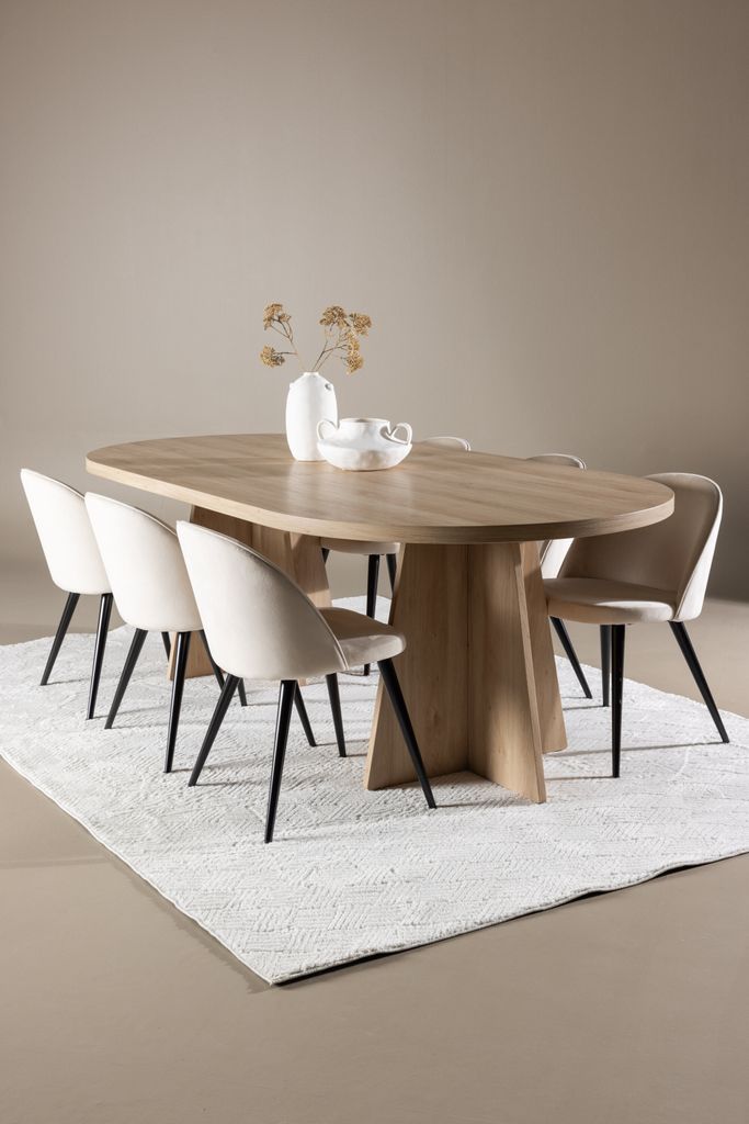 Skapa en elegant och inbjudande matsalsupplevelse med vår fantastiska matgrupp, Venture Home Bootcut Matbord med Velvet Matstol. Denna kombination av modern design och komfort kommer att höja atmosfären i ditt hem.