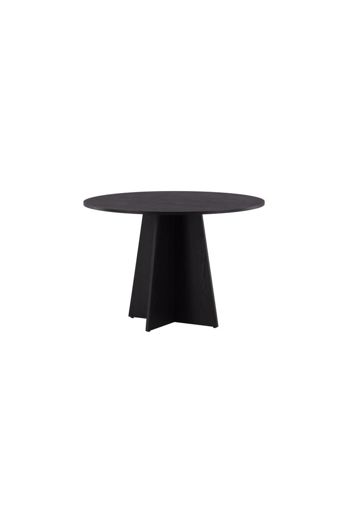 Modernt runt matbord i svart MDF och fanér med unik stomme. Perfekt för stilfulla och trivsamma måltider.