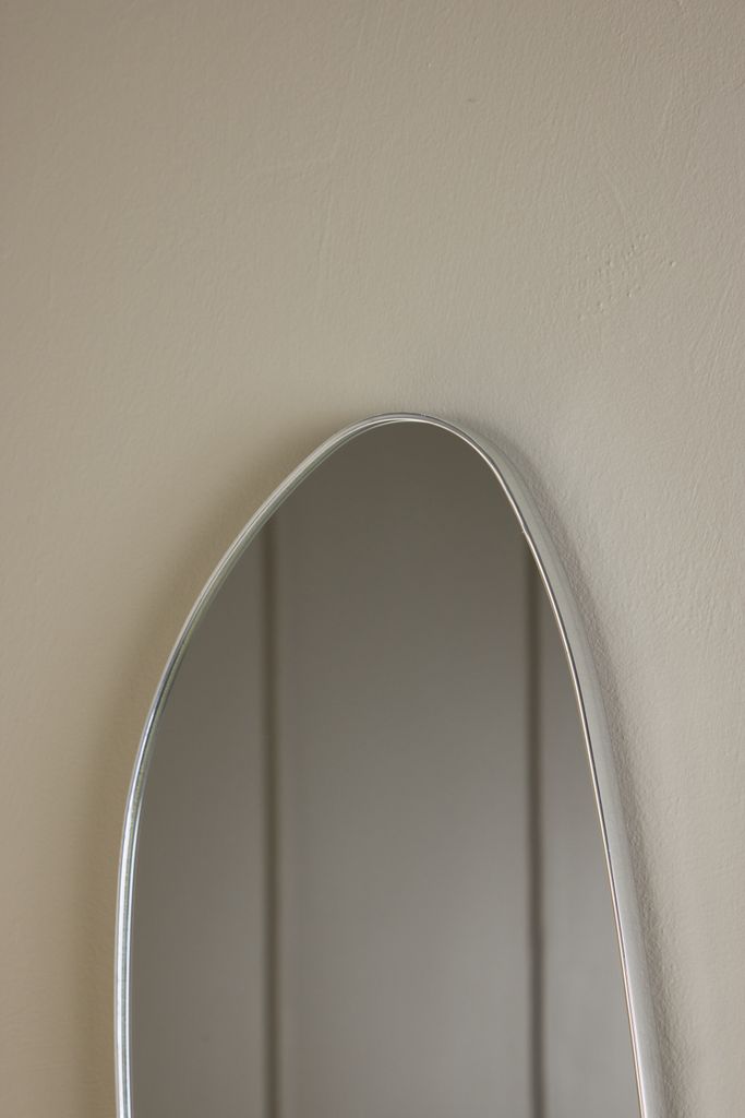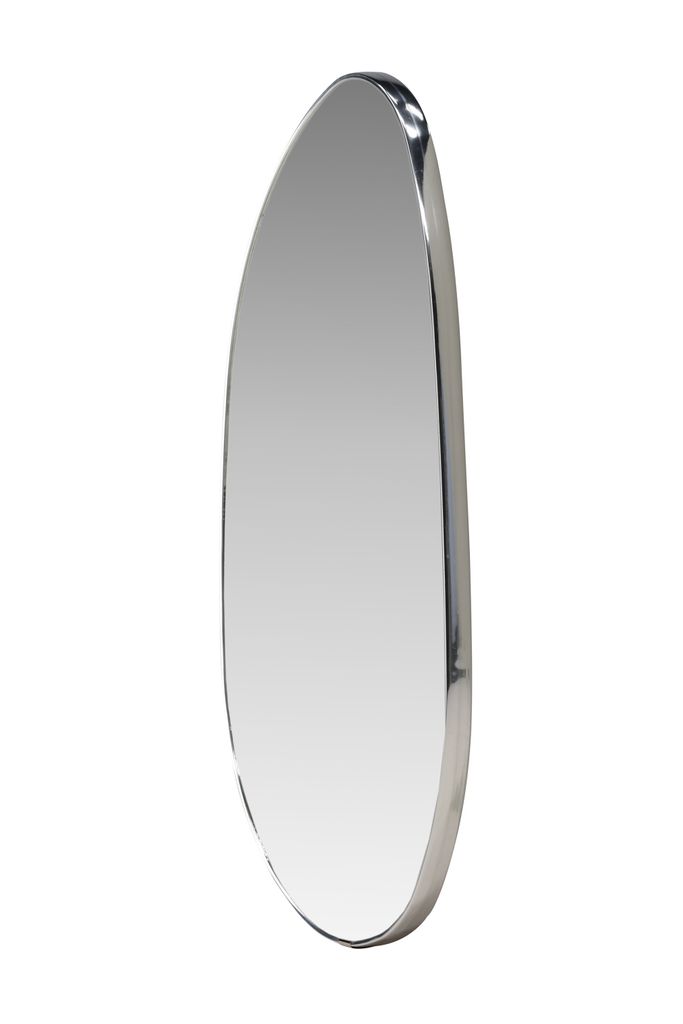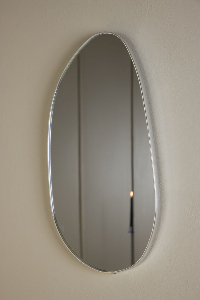 Elegant och stilren spegel i silverfärgat aluminium, perfekt för mindre utrymmen och som dekorativ accent.