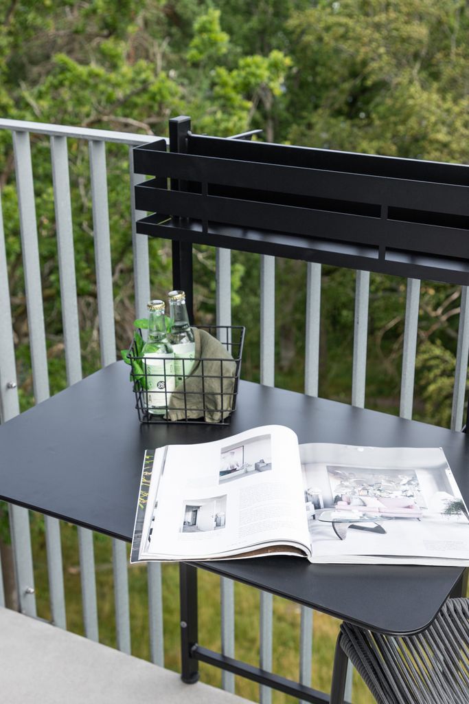 Borneo balkongbord är tillverkat i svart stål och har en stilren och tidlös design som passar perfekt i alla balkongmiljöer. Bordet kan enkelt fällas upp längs med balkongräcket när du behöver extra plats för en kopp kaffe, en bok eller en måltid utomhus. När bordet inte används, kan det enkelt fällas ner, vilket gör att det inte tar någon onödig plats.