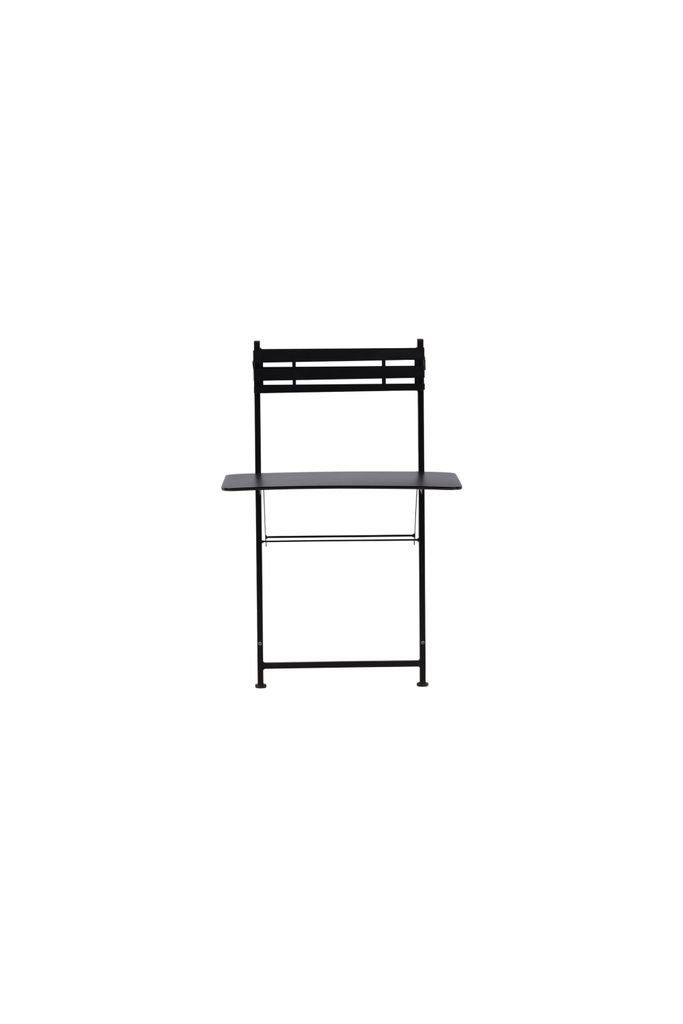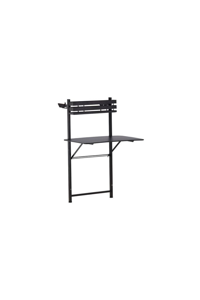 Smart fällbart balkongbord i svart stål, perfekt för att maximera utrymmet och funktionaliteten på din balkong.