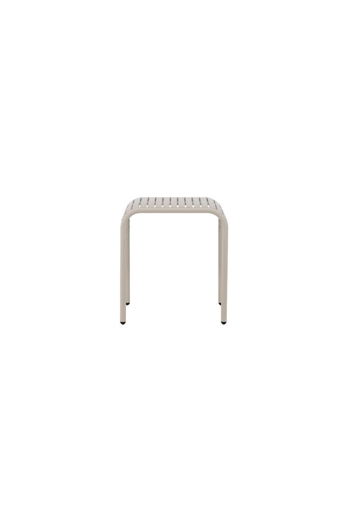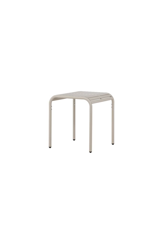 Elegant cafébord i beige aluminium med tidlös skandinavisk design. Perfekt för uteplatsen.