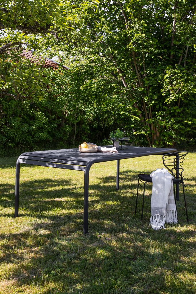 Borneo matbord i antracit aluminium med skandinavisk design. Ribbad bordsskiva, lätt att flytta, perfekt för uteplatsen.
