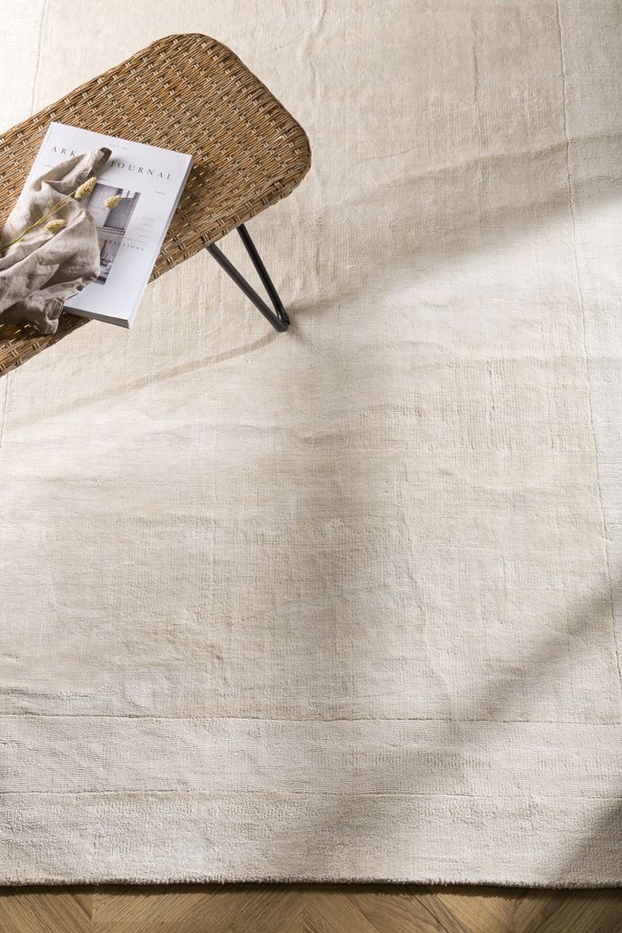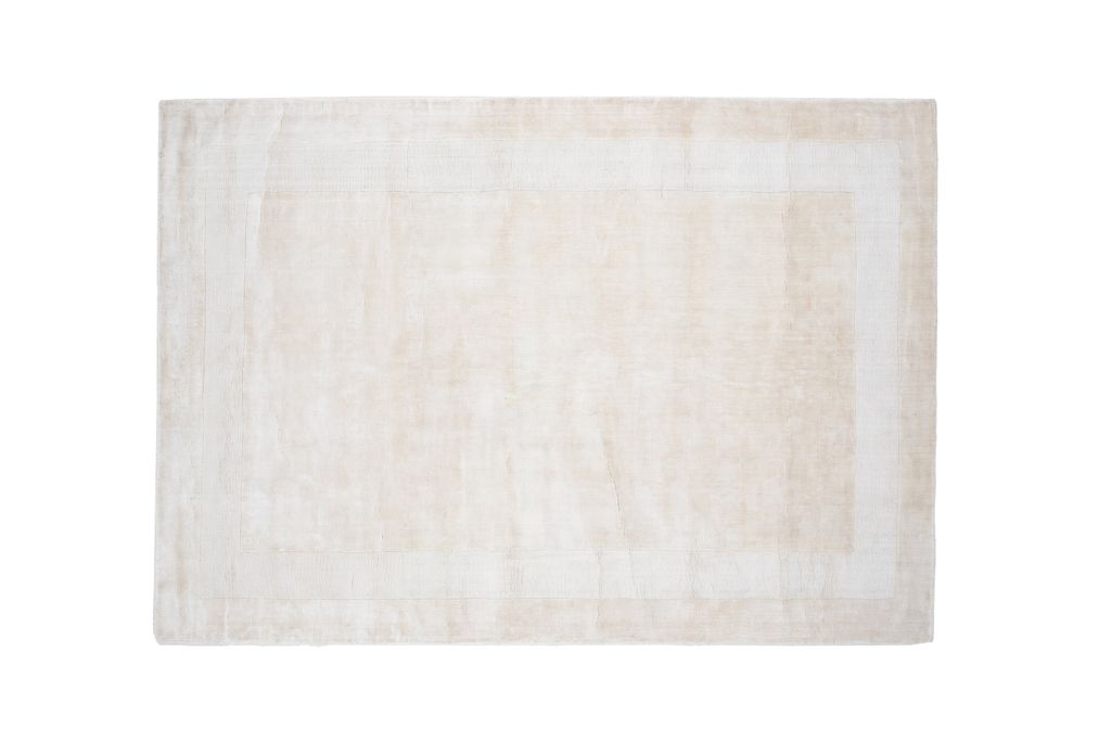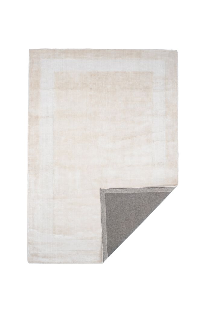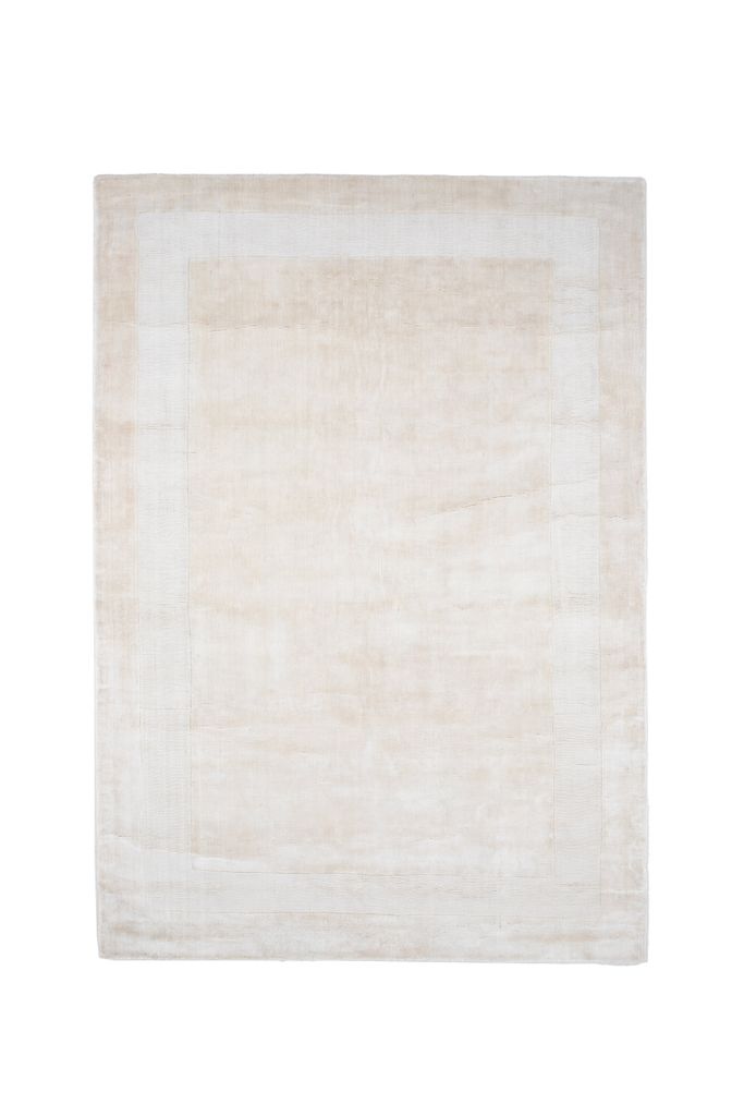 Mattans beige/vita nyans är lätt att matcha med olika inredningsstilar. Det subtila mönstret med en vit kant ramar in mattans former och ger ett sofistikerat utseende. Dess täta lugg ger en mjuk yta att gå på, medan den slitstarka konstruktionen säkerställer långvarig användning.