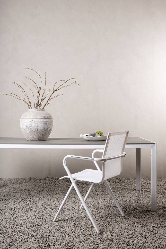 Venture Home Break Bord är ett perfekt val för dig som uppskattar både stil och funktionalitet. Med sin klassiska nordiska design kombinerar detta rektangulära bord elegans och hållbarhet. Bordsskivan i grå polywood ger en naturlig och stilren känsla, medan de vita aluminiumbenen skapar en modern och luftig look.