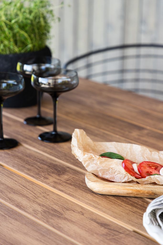 Venture Home Break Bord är ett elegant och funktionellt tillskott till din uteplats eller matsal. Med en klassisk nordisk design har detta rektangulära bord en bordsskiva av polywood som imiterar träets naturliga skönhet, samtidigt som det är motståndskraftigt mot väder och vind. De svarta benen i aluminium ger en modern touch och bidrar till bordets lätta vikt, vilket gör det enkelt att flytta efter behov.