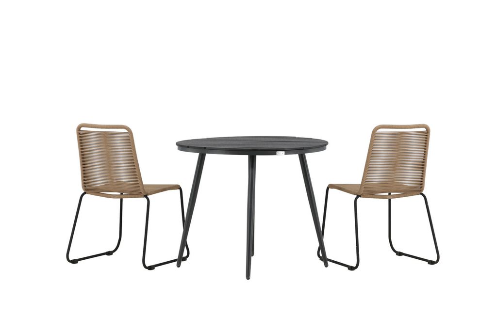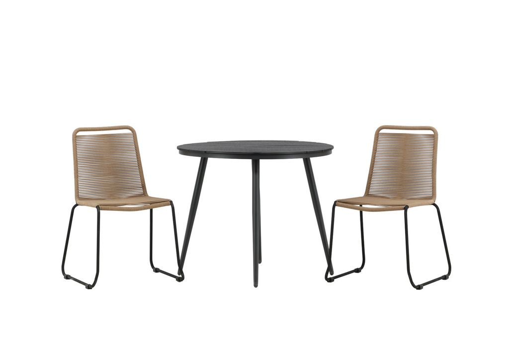 Venture Home Break & Lindos Runt Matbord ⌀90 Svart + 2 st Matstolar Brun