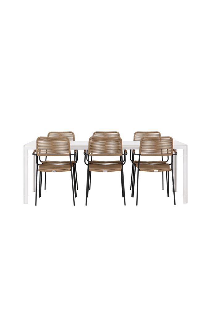 Upptäck Venture Home Break Rektangulär Matgrupp, en perfekt kombination av stil och funktionalitet för din utomhusmiljö. Denna exklusiva matgrupp består av det stilrena Break bordet och sex eleganta Lindos stolar.