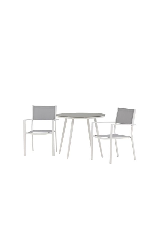 Njut av sommarens alla tillfällen med Venture Home Break Rund Matgrupp, en perfekt kombination av stil och funktion. Detta set inkluderar ett runt bord med en elegant grå bordsskiva i aintwood, vilket ger en naturlig känsla med minimal skötsel. Bordets klassiska vita aluminiumunderrede ger en modern och ren look.