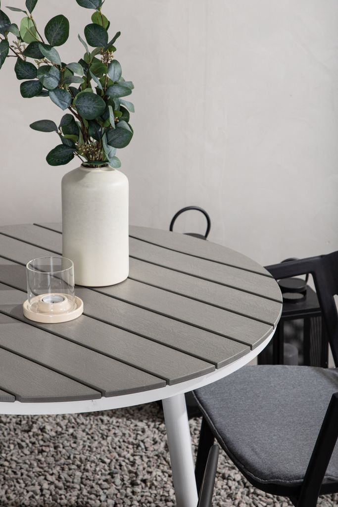 Venture Home Break Rund Matgrupp är den perfekta lösningen för intima måltider i sommar. Bordet har en elegant rund bordsskiva i grå aintwood, vilket ger en modern och stilren känsla. De vita aluminiumbenen är diskret utsvängda för extra stabilitet och stil.