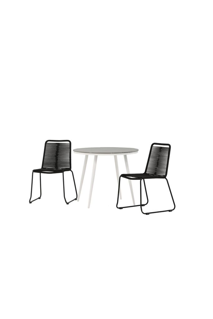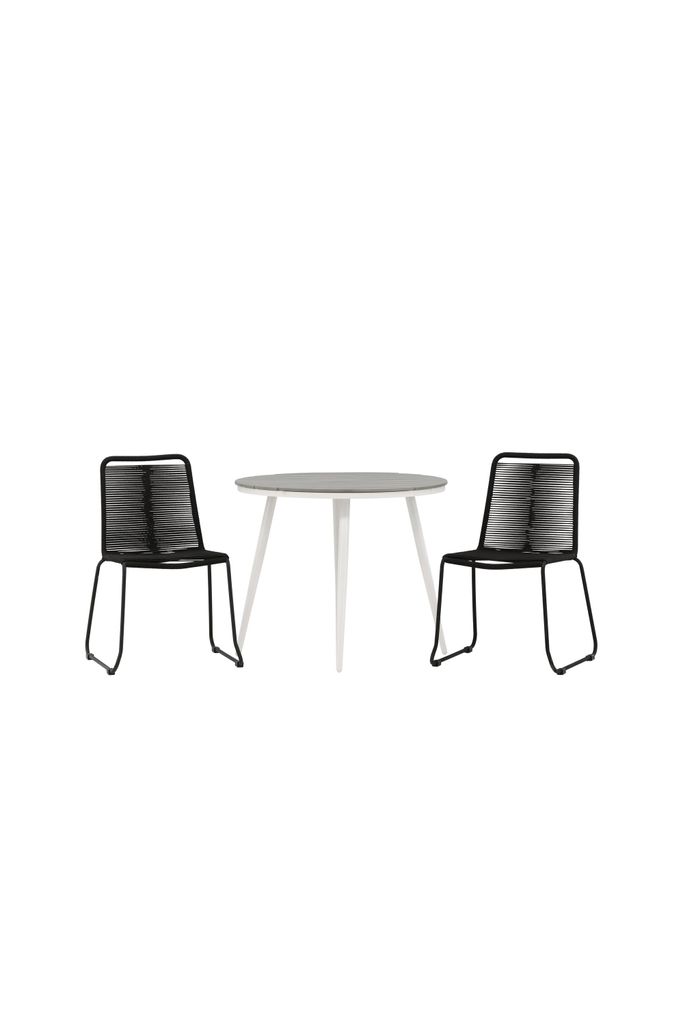 Skapa en inbjudande atmosfär på din uteplats med Venture Home Break Rund Matgrupp. Denna stilrena cafégrupp kombinerar elegans och funktionalitet med sin svarta och grå färgpalett. Bordet har en rund bordsskiva i grå aintwood, vilket ger en träliknande textur som är både snygg och lättskött. Det klassiska underredet i vit aluminium kompletterar bordet perfekt.