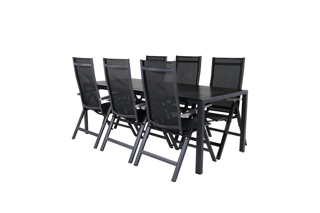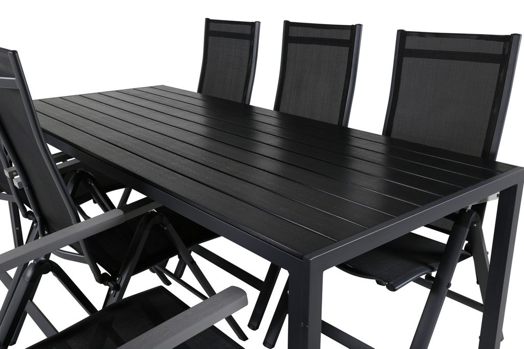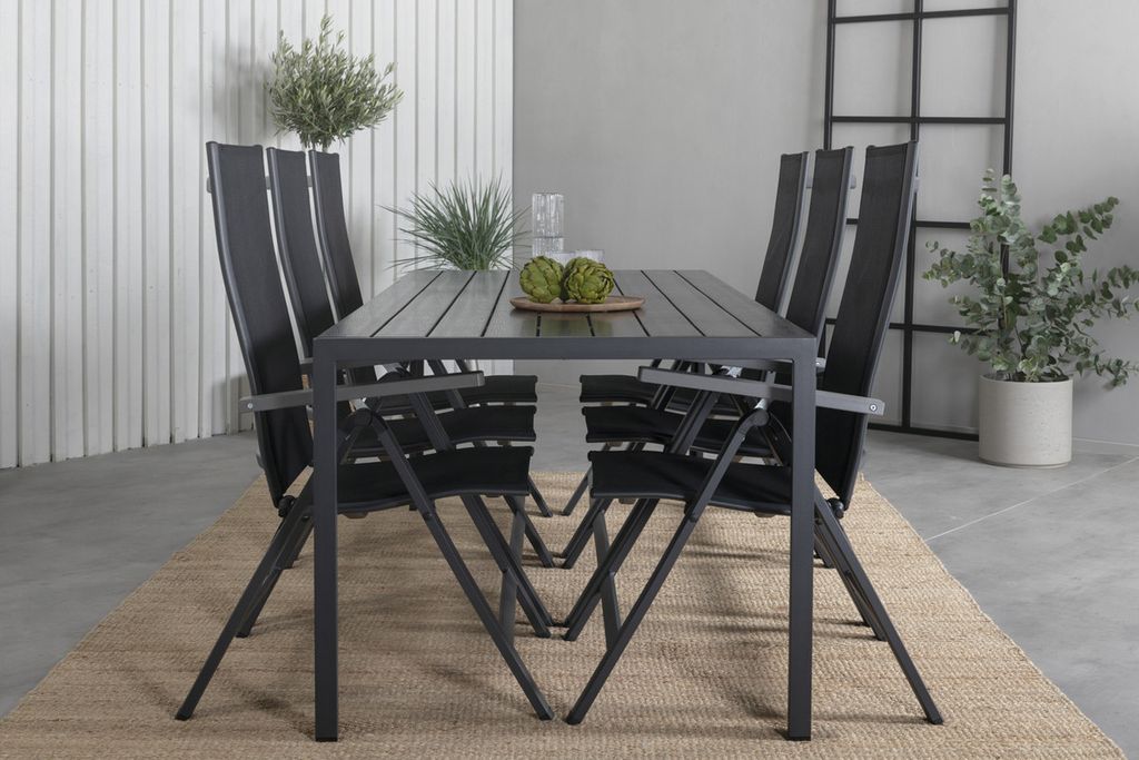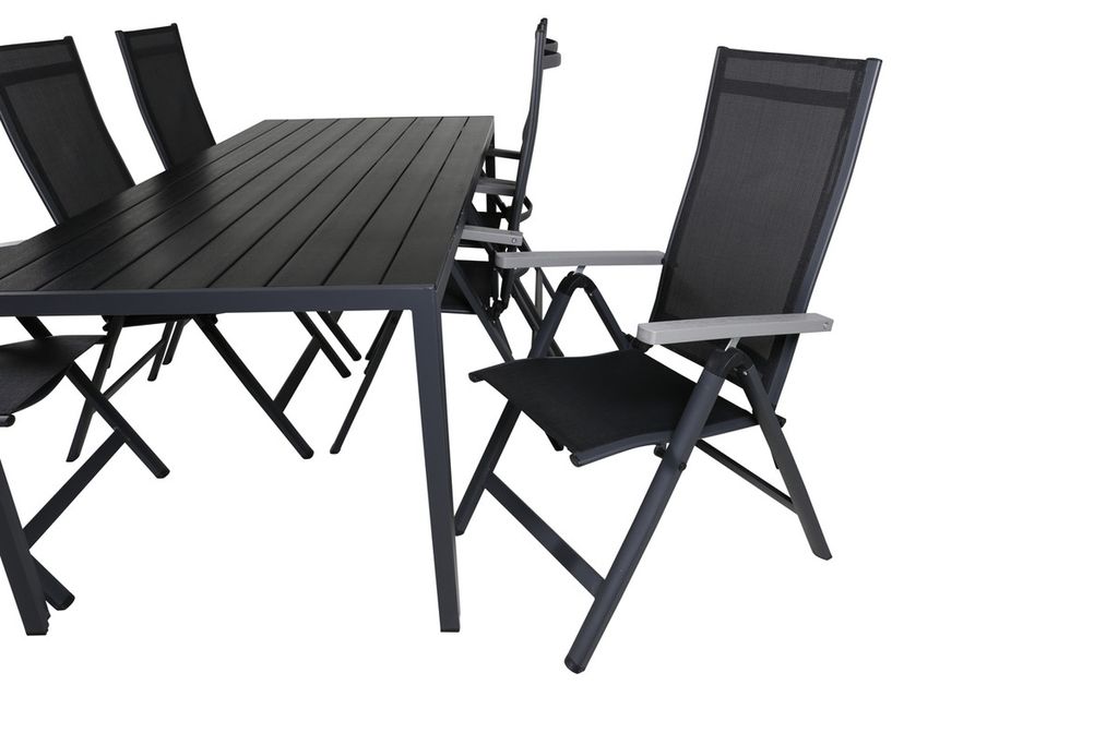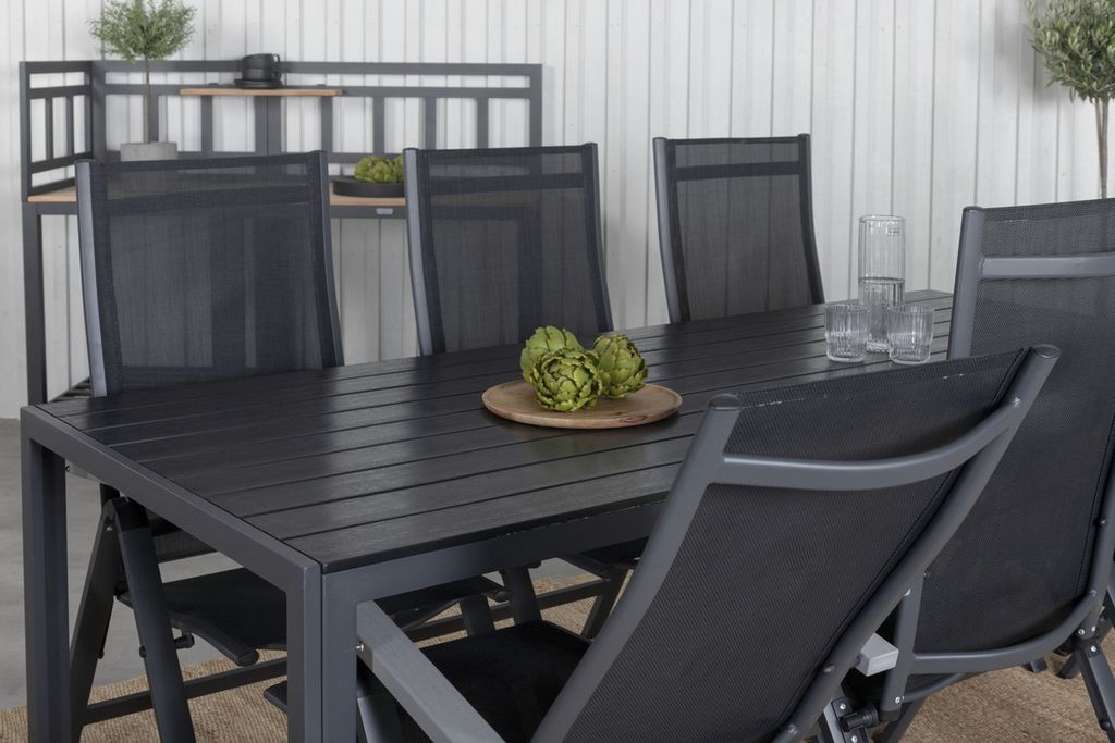 Gör dig redo för sommarens enastående uteliv med en bekväm matgrupp i läcker svart kulör. Matbord Break kombineras utmärkt med våra fällbara matstolar från serien Albany - justera ryggstödet för optimal komfort och sitt bekvämt i sommar!