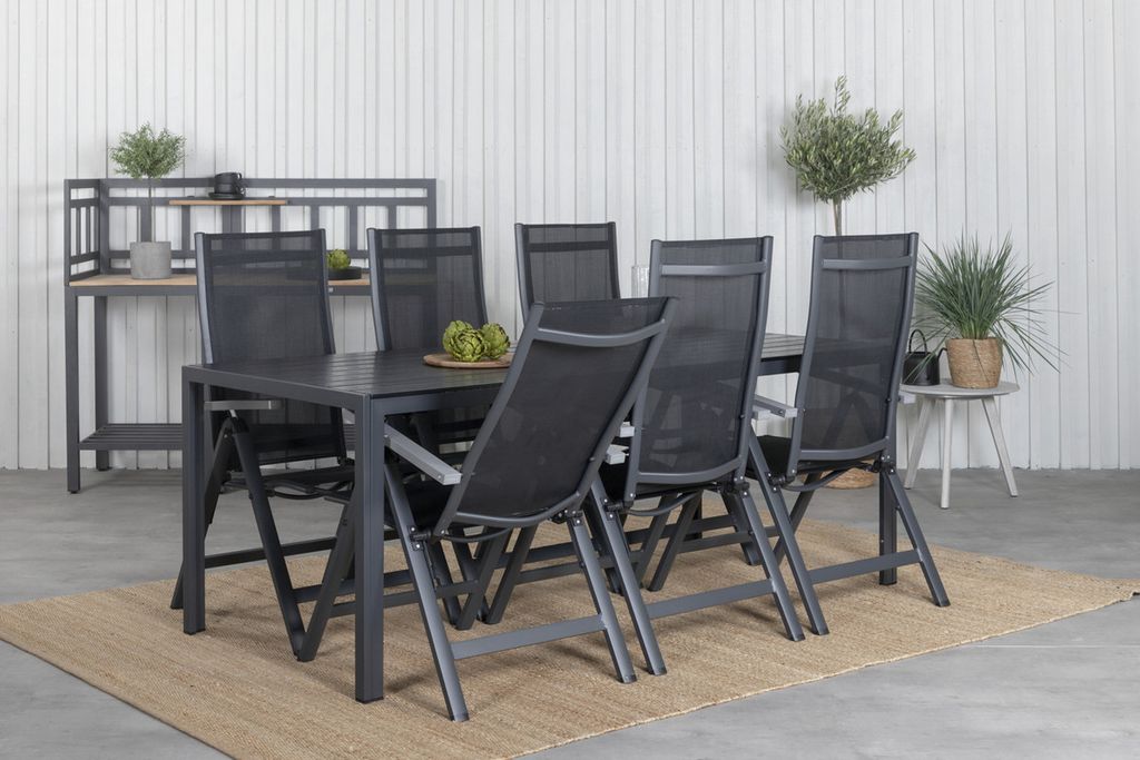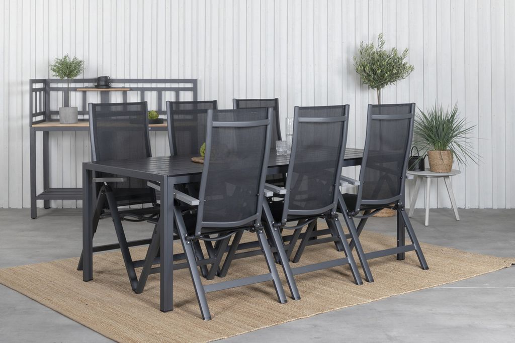 Venture Home Levels & Copacabana Rektangulärt Matbord 160 x 100 Vit + 6 st Reclinerstolar Grå