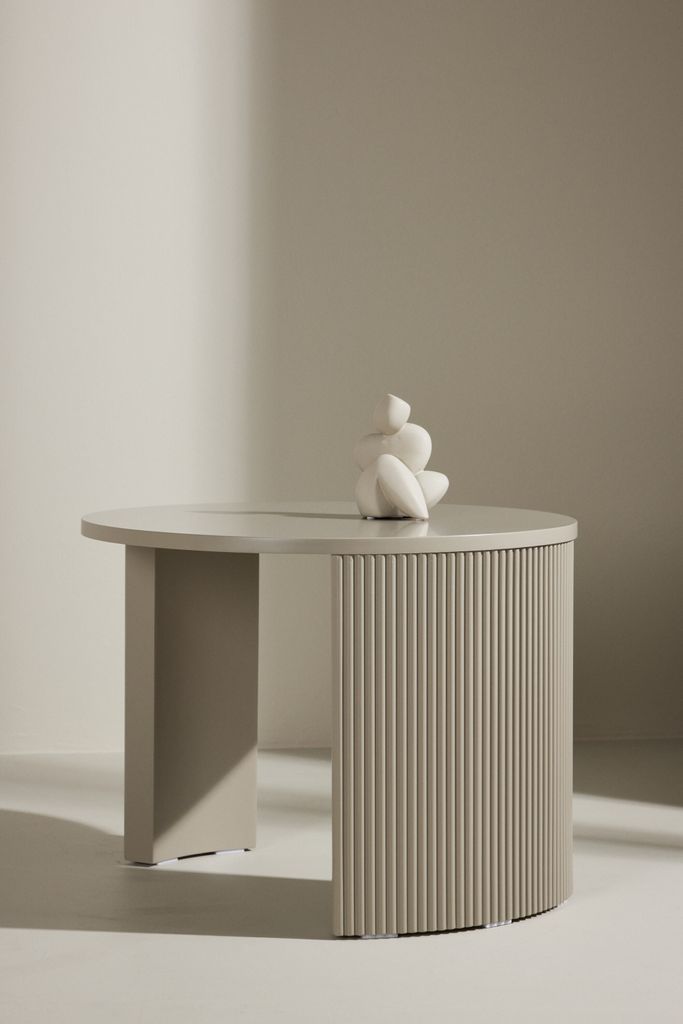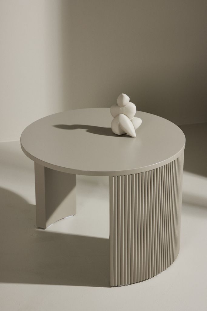Stilrent soffbord i beige MDF, perfekt för mindre utrymmen. Kombinerar enkelhet med sofistikerad design.
