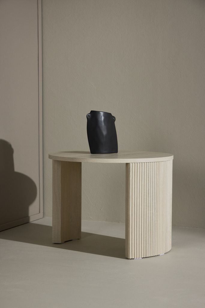 Stilrent och mångsidigt soffbord i MDF med whitewash-finish och rundad design för en ljus och harmonisk känsla.