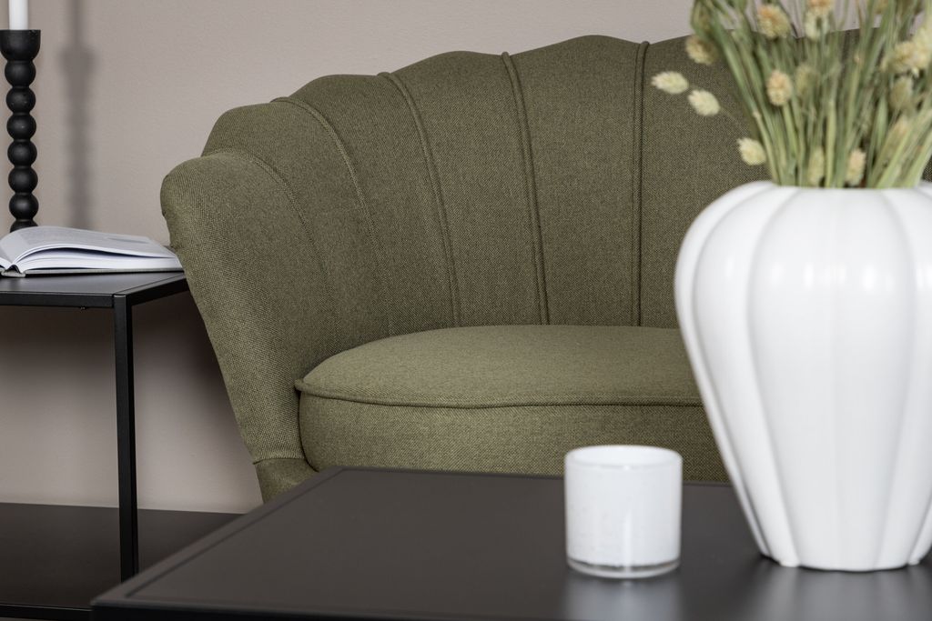 Venture Home Calais 3-Sits Soffa är en elegant och komfortabel möbel som kombinerar stil med funktion. Den natursköna gröna polyesterklädseln ger ett fräscht och modernt utseende, vilket förstärks av den smakfulla veckade ryggen som ger ett lyxigt intryck. De smala, vinklade metallbenen i svart stål ger soffan en lätt och stilren profil.