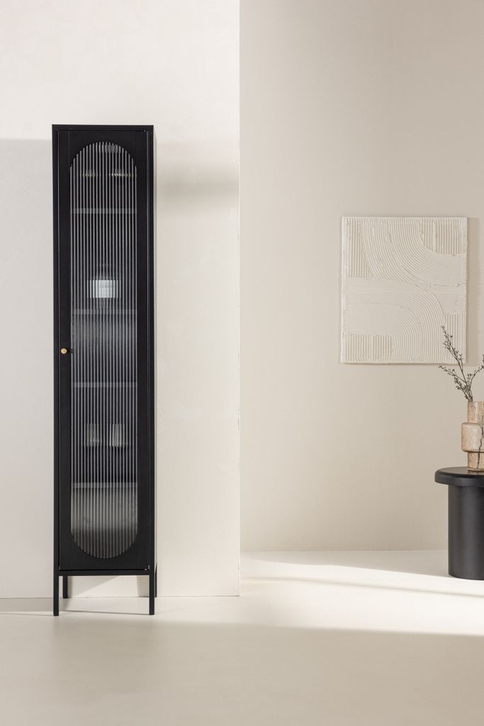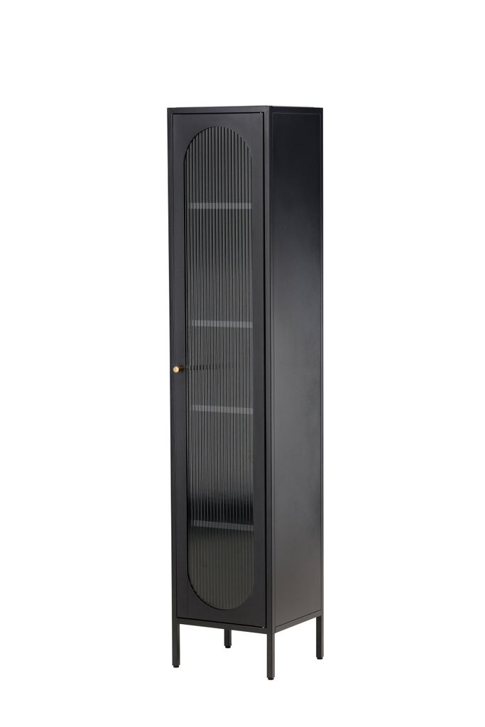 Cali stålskåp förenar stil och funktion med svart färg och vågigt glas.