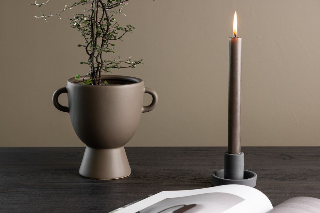Upptäck skönheten och funktionaliteten hos Cent-serien, där varje kruka och vas är en unik konstnärlig skapelse. Välj din favorit bland de olika storlekarna och formerna. Cent-krukan, tillverkad i robust stengods och klädd i en varm brun nyans, är ett elegant tillskott till ditt hem.