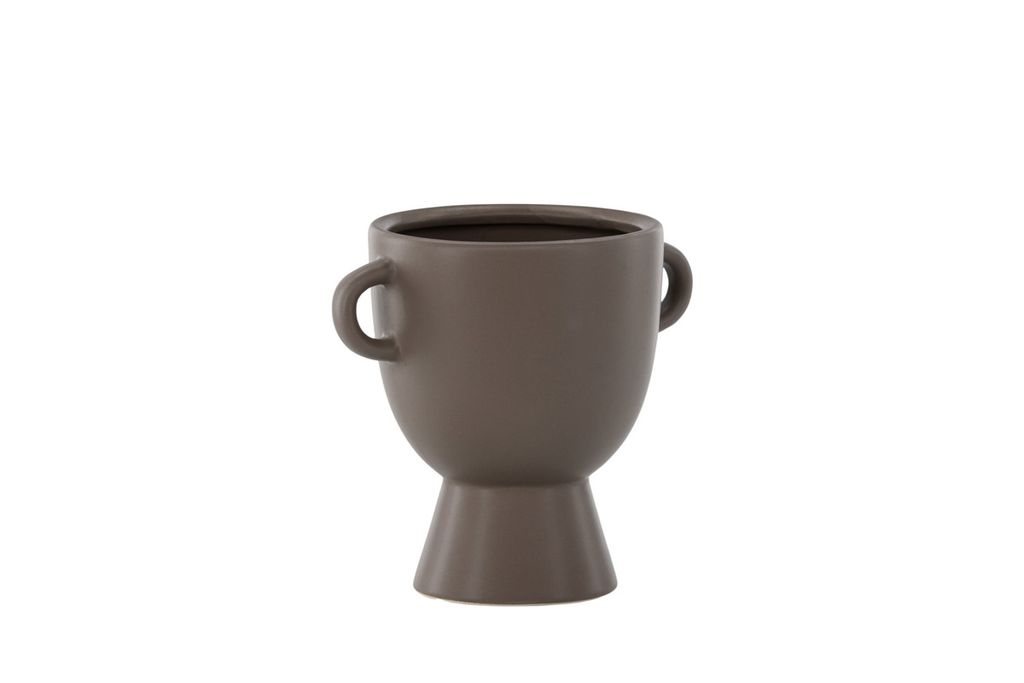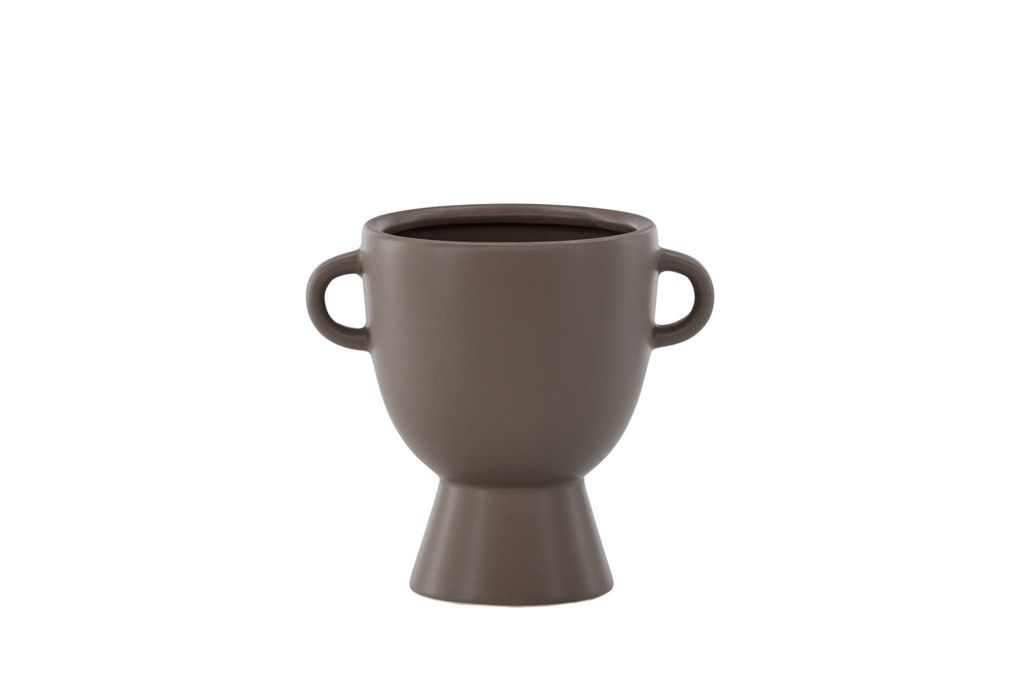 Med en höjd på 18cm och en rund form blir Cent-krukan en perfekt plats för dina växter eller blommor. Dess välbalanserade design inkluderar ett handtag på varje sida, vilket ger en extra detalj till krukan.