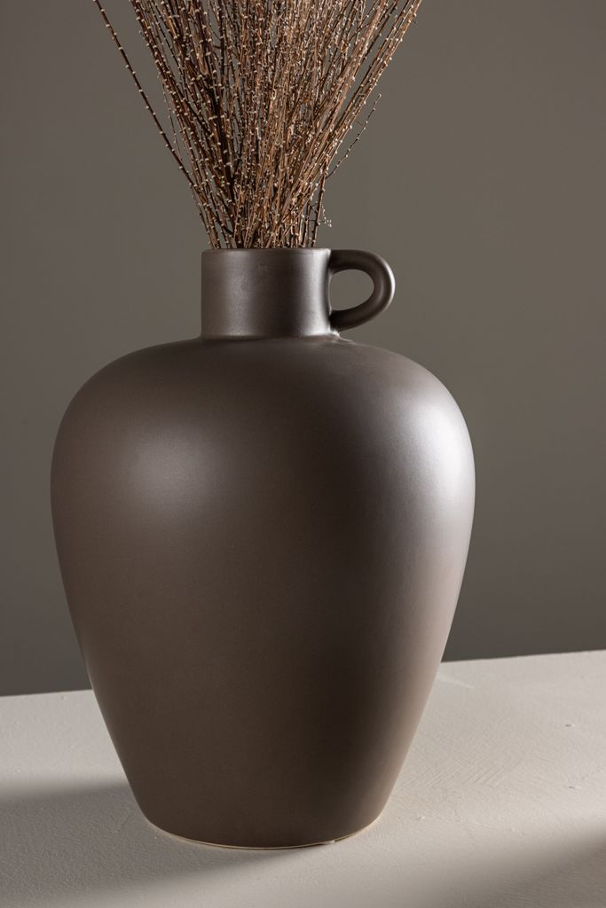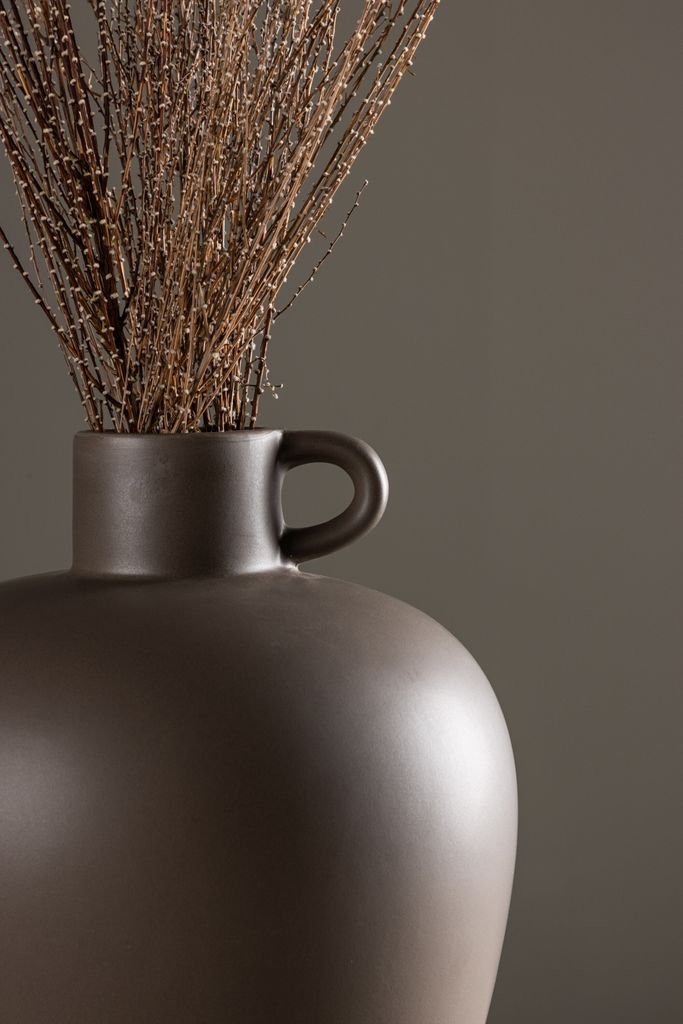 Välkommen till Cent-serien, där varje vas är en unik konstnärlig skatt. Cent-urnan, med sina imponerande 33cm i höjd, är en enastående del av denna kollektion. Tillverkad i robust stengods och klädd i en varm brun nyans, utstrålar Cent en tidlös skönhet som kommer att bli ett värdefullt tillskott till ditt hem.