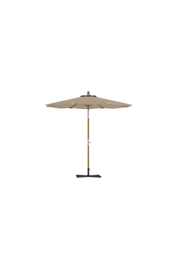 Med sin klassiska design i beige och naturliga färger smälter parasollet perfekt in i både moderna och traditionella miljöer. Den stabila stången med en elegant trälook förstärker den tidlösa känslan och ger en sofistikerad touch till dina utemöbler.