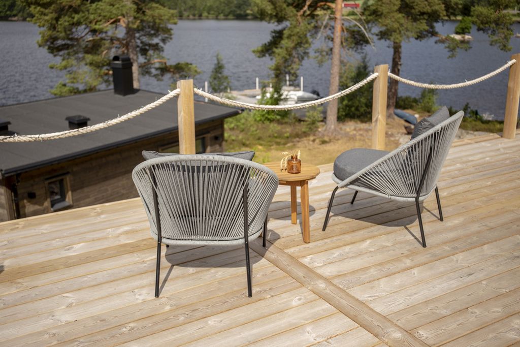 Modernt och ombonat! Sidobord Chania tillsammans med Lindos loungestolar ger dig en loungegrupp att längta hem till en varm sommarkväll. Stolarna är väl tilltagna med en sits i grått vävt rep – här sitter du gärna kvar länge och njuter av sommarens härliga stunder!