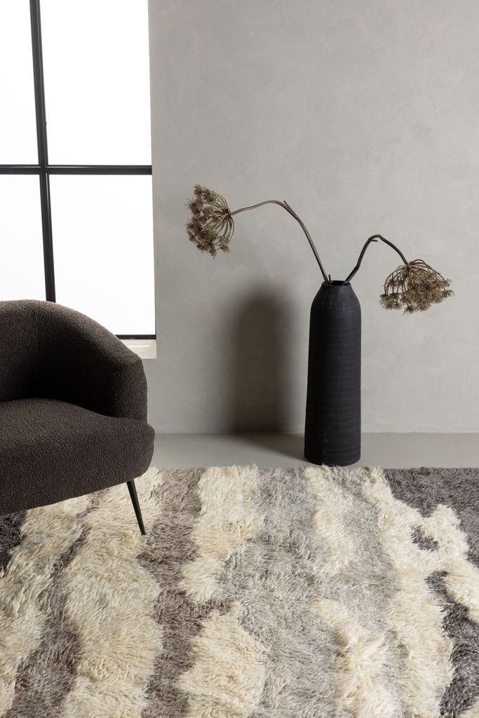 Mönstret på mattan är en hyllning till naturen med sina jordnära toner av grå, beige och ljusbrun. Denna färgpalett ger en tidlös och elegant känsla till din inredning och kan enkelt anpassas till olika stilar och färgscheman.