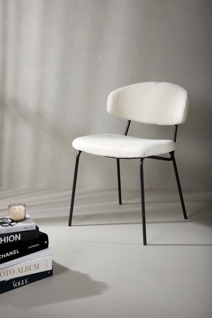 Chico matstol kombinerar stilren minimalism med bekväm boucle i beige, perfekt för moderna hem.