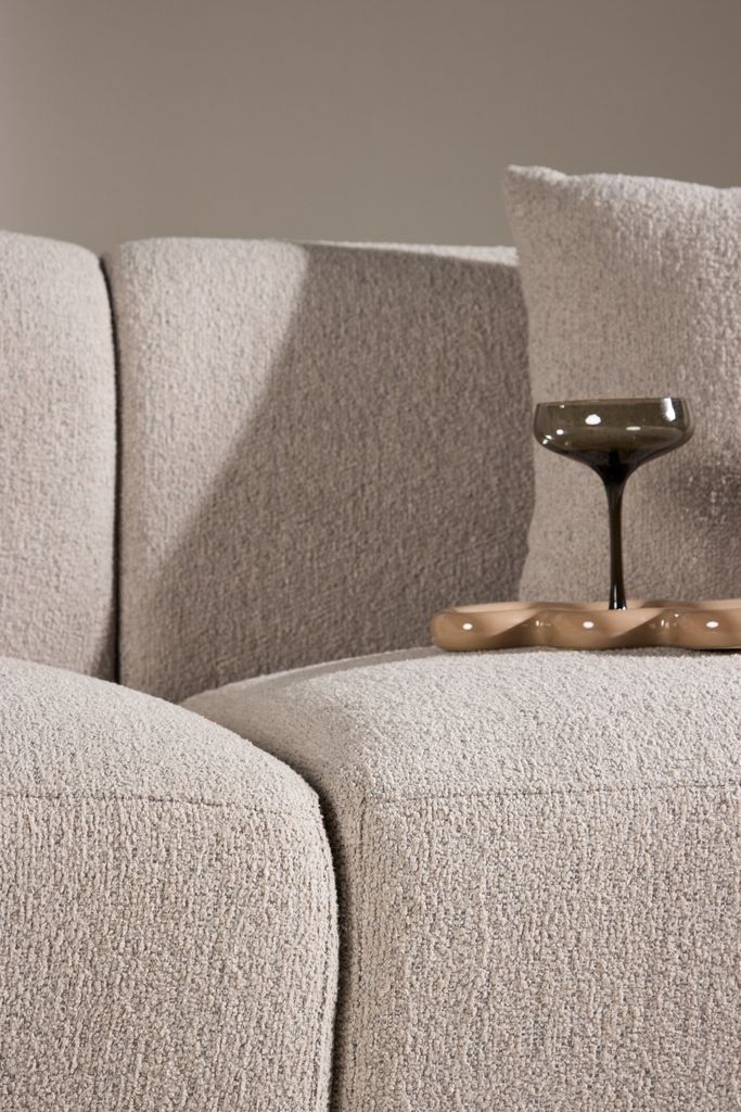 Den Venture Home Cielo 3-sitssoffa kombinerar modern design med oöverträffad komfort och är klädd i lyxigt beige bouclématerial. Detta ger soffan en unik textur och mjukhet som både ser exklusiv ut och känns härlig att sitta i.