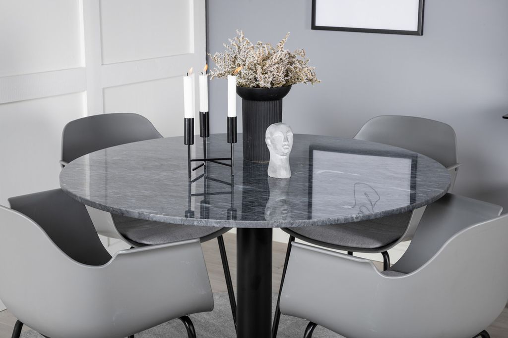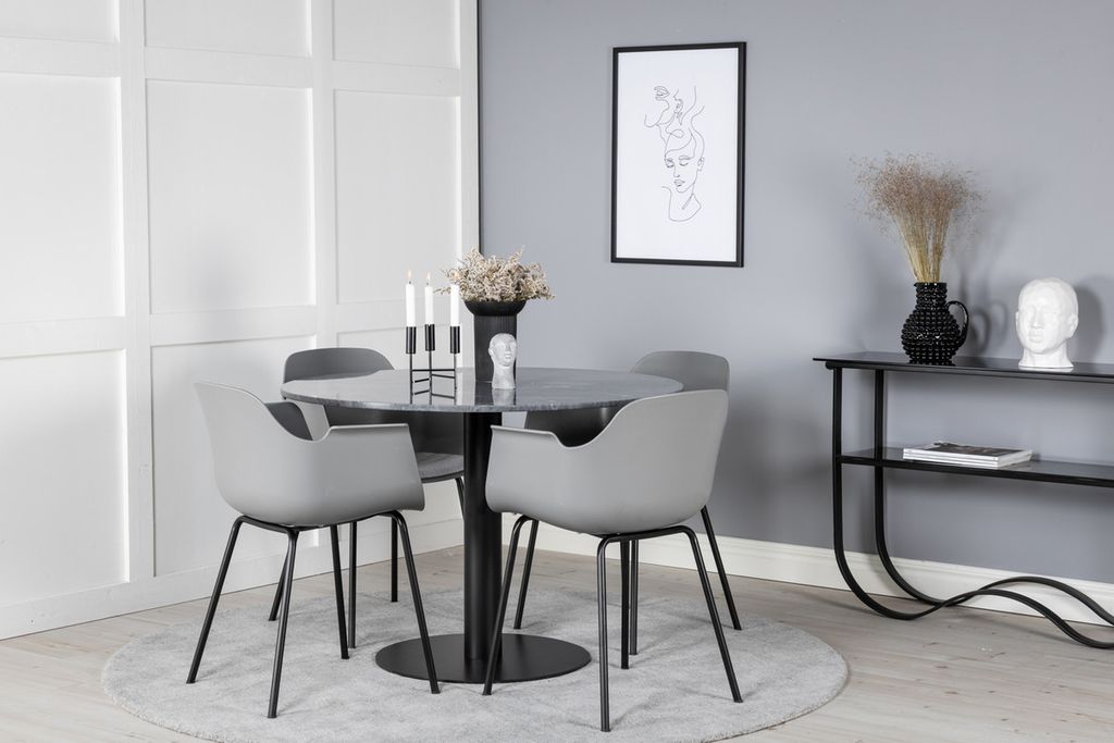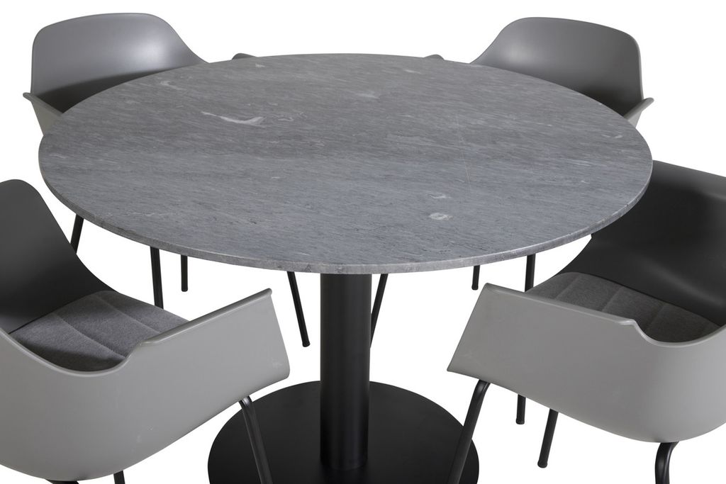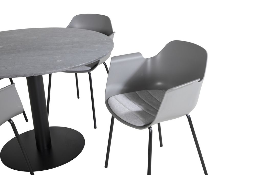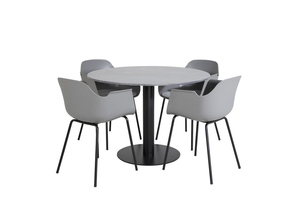 Venture Home Comfort & Estelle 4 st Matstolar Grå + Runt Matbord ⌀106 Mörkgrå