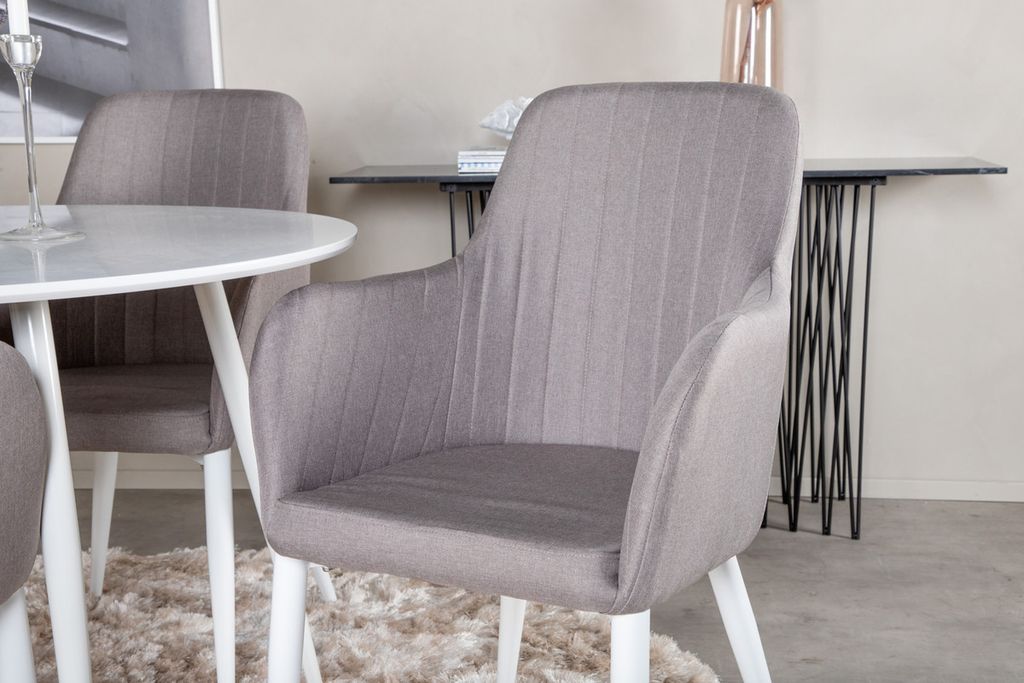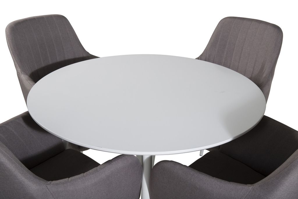 Venture Home Comfort & Plaza 4 st Matstolar Grå + Runt Matbord ⌀100 Vit