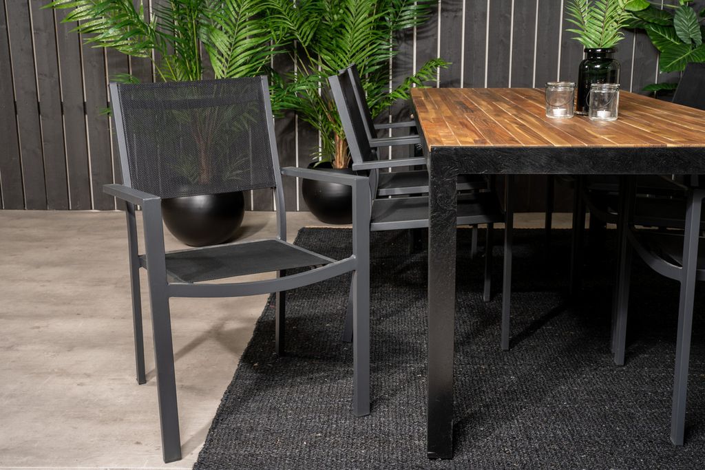 Det snygga matbordet Bois matchas med stolarna Copacabana på ett snyggt sätt och skapar en modern och ombonad känsla på vilken uteplats eller altan som helst. En kombination som garanterat står sig över tid!