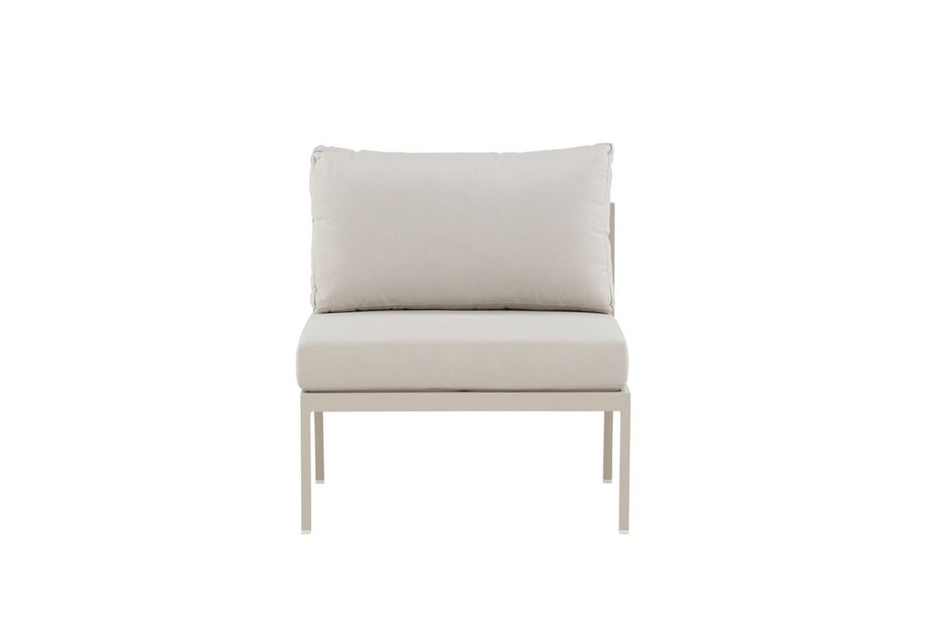 Bygg din drömlounge med Copacabana soffmodul, mittdel. Denna stilrena modul i en modern beige färg är designad för att ge både komfort och flexibilitet. Med en ram av lätt och robust aluminium är den perfekt för utomhusbruk och klarar av att stå emot väder och vind. Dynorna är tillverkade av olefin, ett slitstarkt och väderbeständigt tyg, och har samma harmoniska beige nyans för att skapa en enhetlig och inbjudande look.