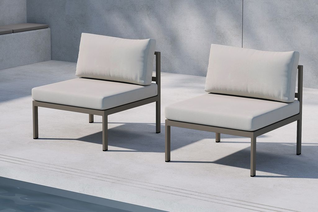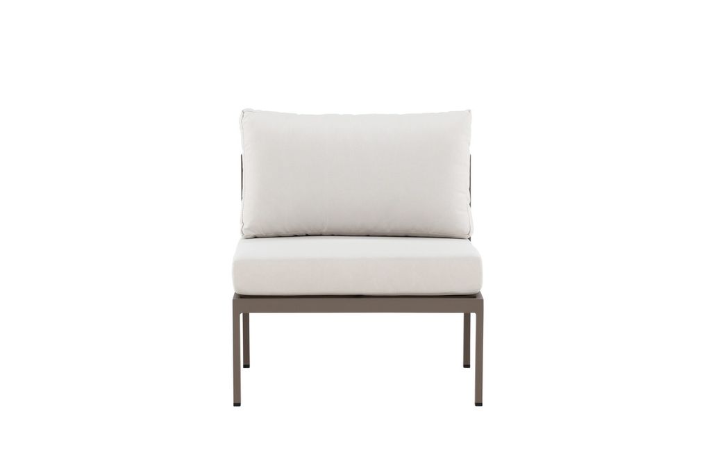 Bygg din drömlounge med Copacabana soffmodul, mittdel. Denna stilrena modul i en modern brun färg är designad för att ge både komfort och flexibilitet. Med en ram av lätt och robust aluminium är den perfekt för utomhusbruk och klarar av att stå emot väder och vind. Dynorna är tillverkade av olefin, ett slitstarkt och väderbeständigt tyg, och har samma harmoniska beige nyans för att skapa en enhetlig och inbjudande look.